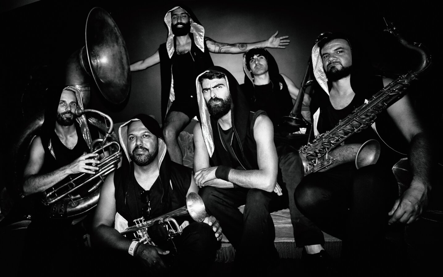 Ce septet hors du commun venu tout droit de Rio de Janeiro mélange la chaleur des cuivres à la puissance des beats répétitifs. Avec ses compositions originales, hypnotiques et enivrantes, TechnoBrass réveille nos instincts primitifs et nous conduit inexorablement vers un culte aussi exaltant qu’insoupçonné.