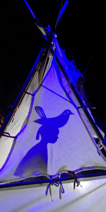 La Cie Atipik explore dans une installation-spectacle la thématique du refuge, de la cabane, du vent et des saisons accompagnée par les mélodies d’un violoncelle.