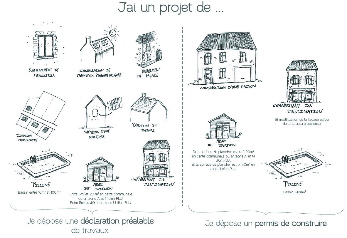- Il est obligatoire de déclarer ses travaux avant de construire ou de modifier l’aspect extérieur d’un bâtiment. Des travaux réalisés sans autorisation constituent une infraction passible de sanctions (remise en état, amendes, …).